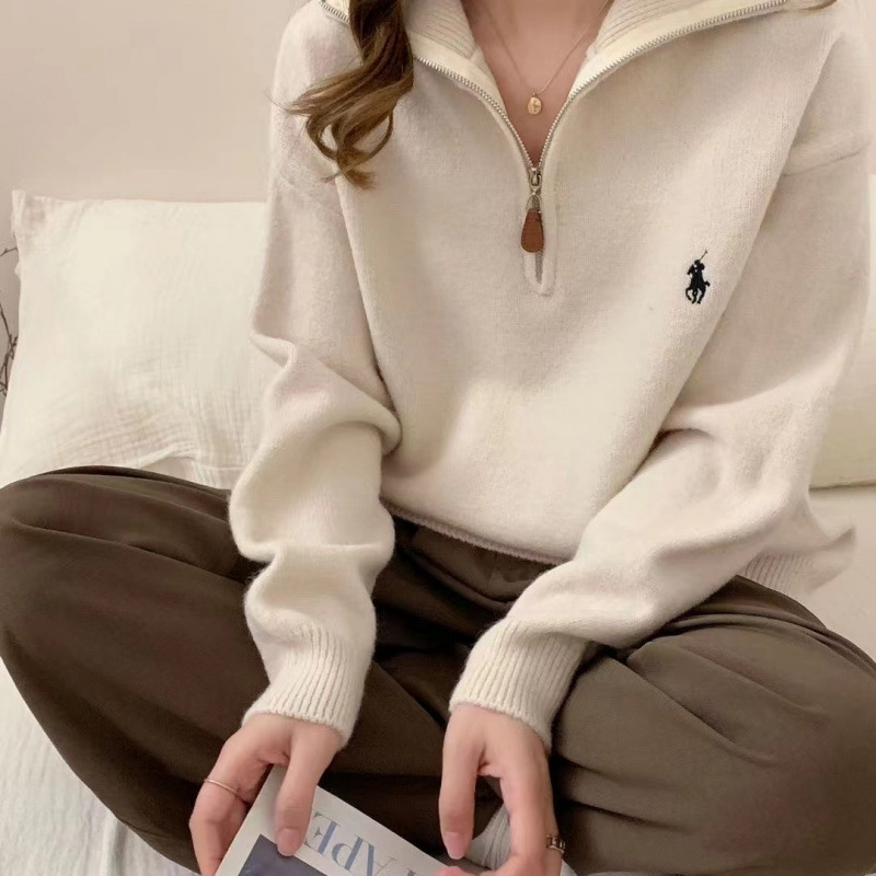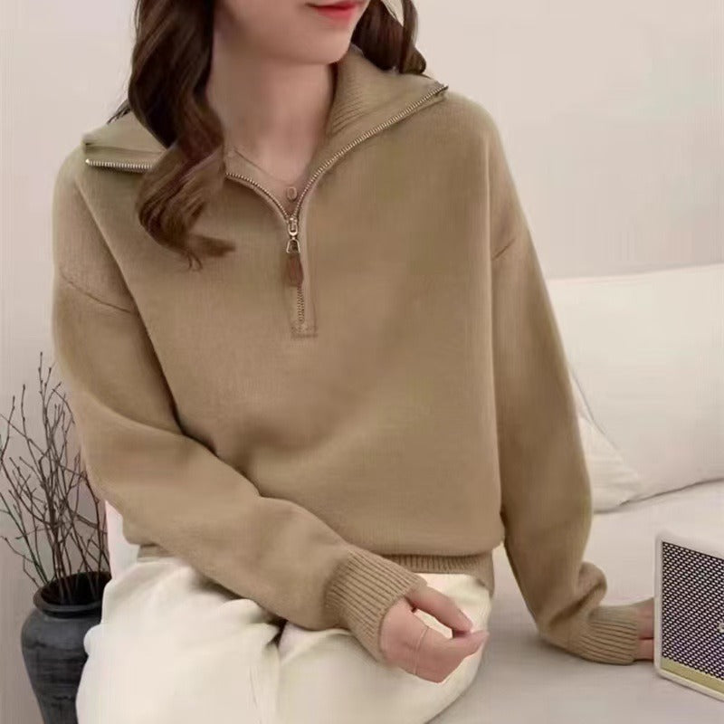 Korean Version Of Half Zipper Collar Collar Sweater Women's Autumn And Winter Knitted Women's Loose Casual Soft Sweater HZ0108