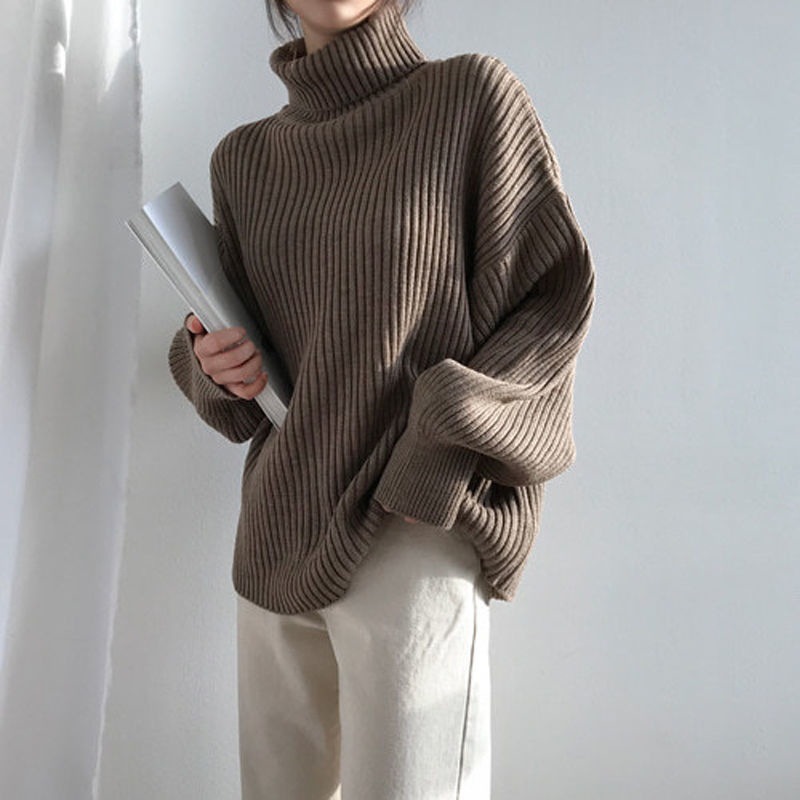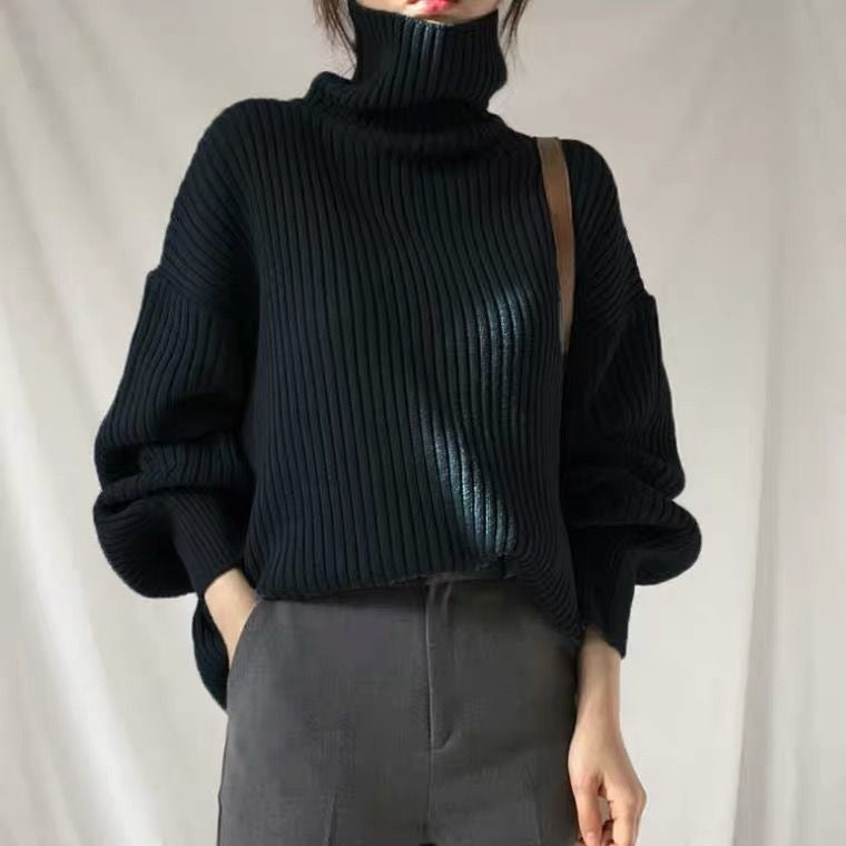Lazy Wind Turtleneck Sweater Women's Autumn And Winter New Korean Version Of The Retro Loose-Set Long-Sleeved Knitted Shirt Top HZ0108