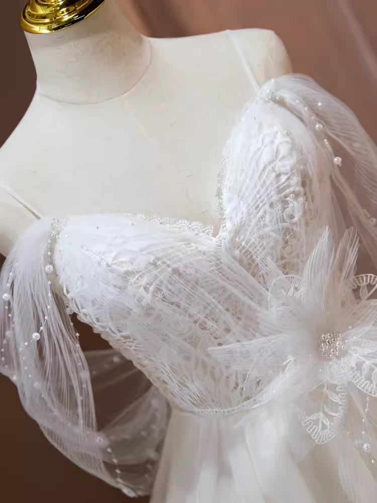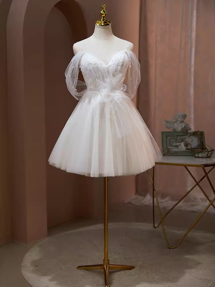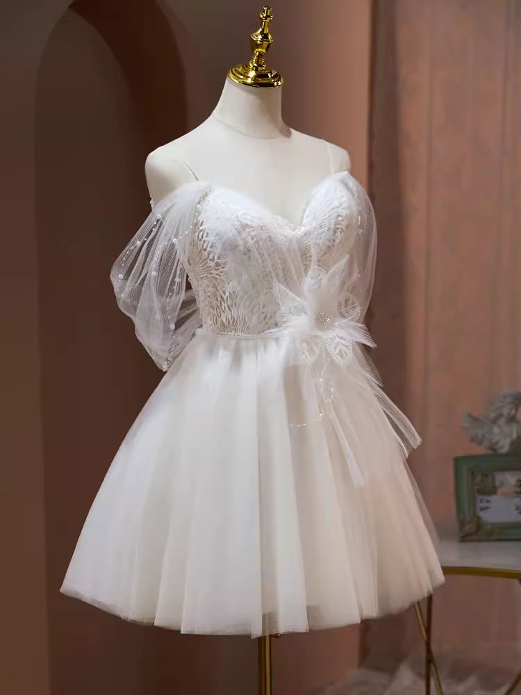 Niulatu A line Off The Shoulder Tulle White Short Homecoming Dresses HZ1110