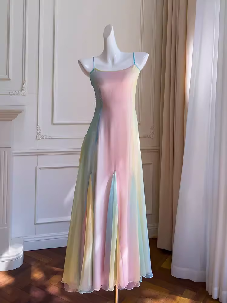 Niulatu A Line Ombre Chiffon Straps Long Prom Dress HZ1110