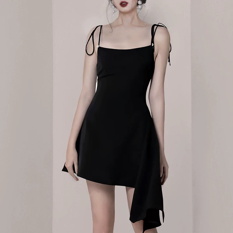 Niulatu A Line Spaghetti Straps Black Satin Homecoming Dresses Birthday Outfit HZ1110