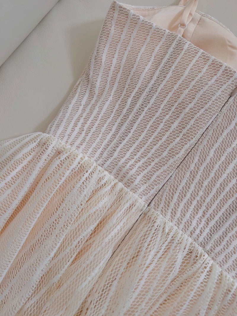 Niulatu A Line Spaghetti Straps Lace Prom Dress White Formal Dresses HZ1110