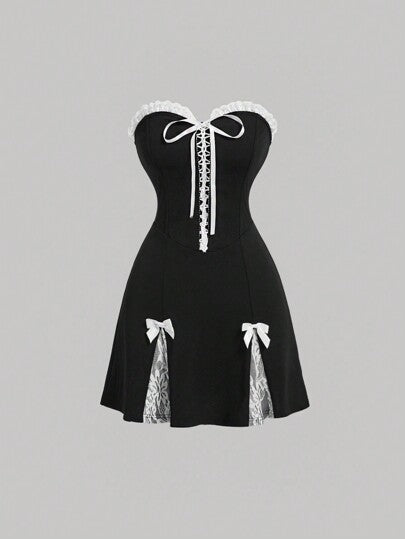 Niulatu A line Strapless Black Velvet Homecoming Dress With Bowknot HZ1110
