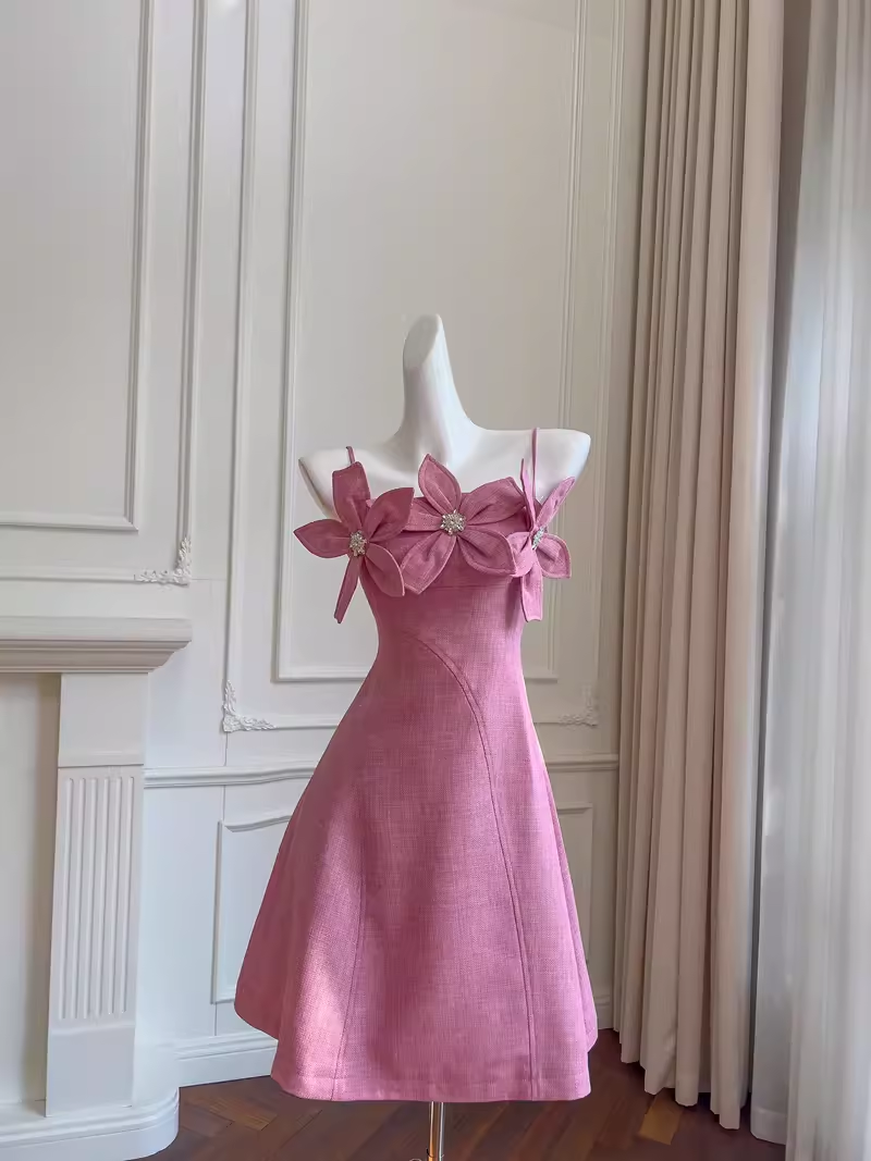 Niulatu A line Straps Pink Homecoming Dress 18th Birthday Outfit HZ1110