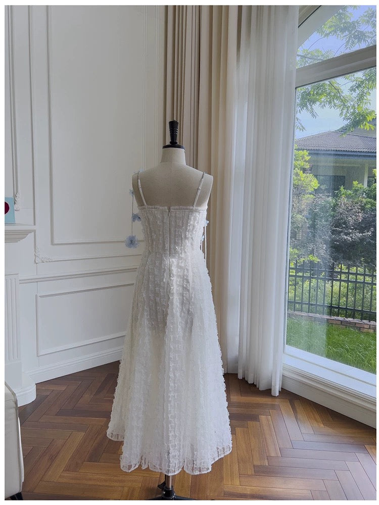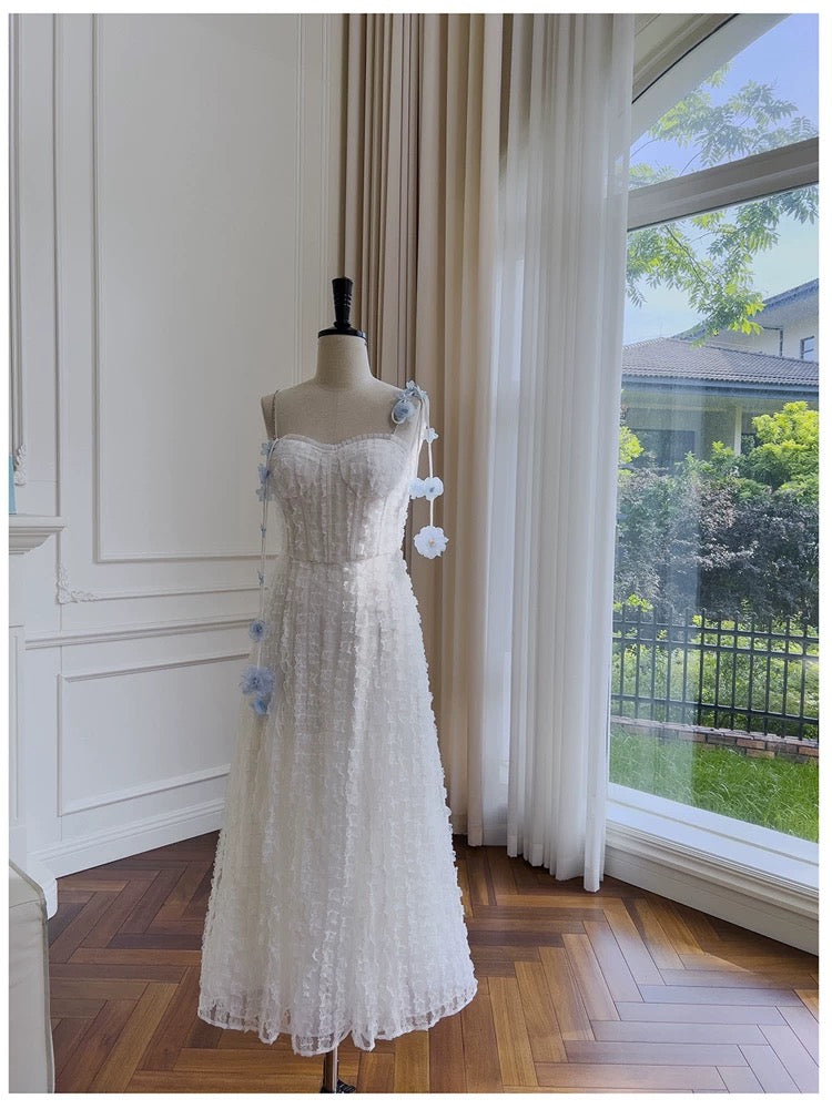 Niulatu A Line Straps White Lace Prom Dress With Flowers Prom Dresses HZ1110