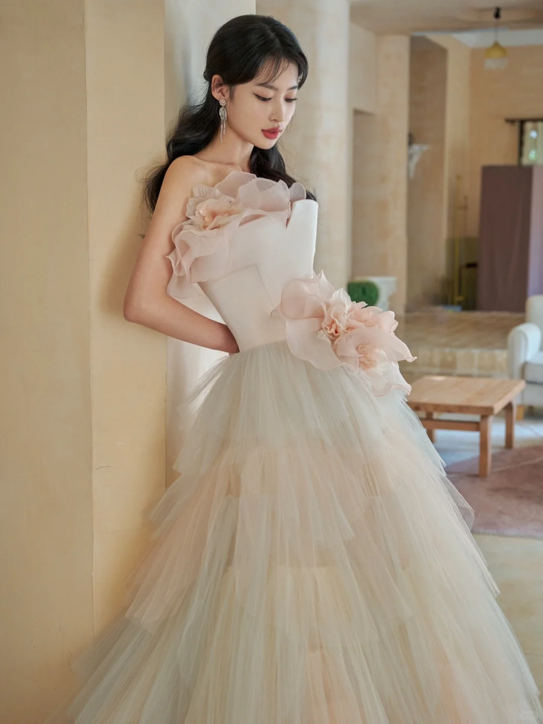 Niulatu Ball Gown Strapless Satin Tulle Long Wedding Dresses HZ1110