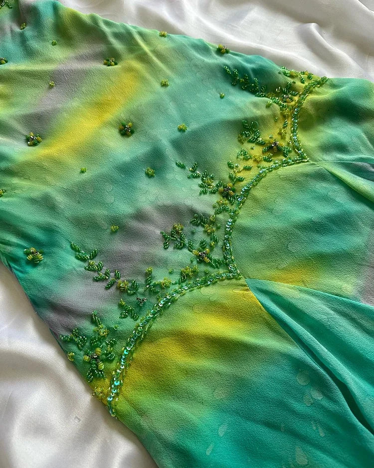 Niulatu Gradient Green Halter Sheath Prom Dresses Elegant Beaded Chiffon Formal Dress Pool Party Dress Holiday Dress HZ1031