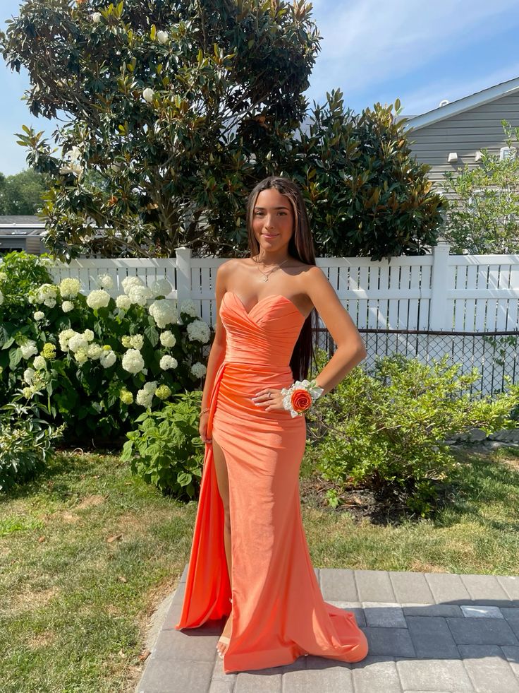 Niulatu Orange Mermaid Sweetheart Satin Pleated Slit Long Prom Dress,Formal Dress HZ1110