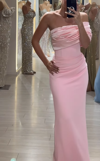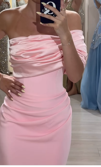 Niulatu Pink Sheath Long Prom Dresses Elegant Satin One Shoulder Evening Gowns HZ1031