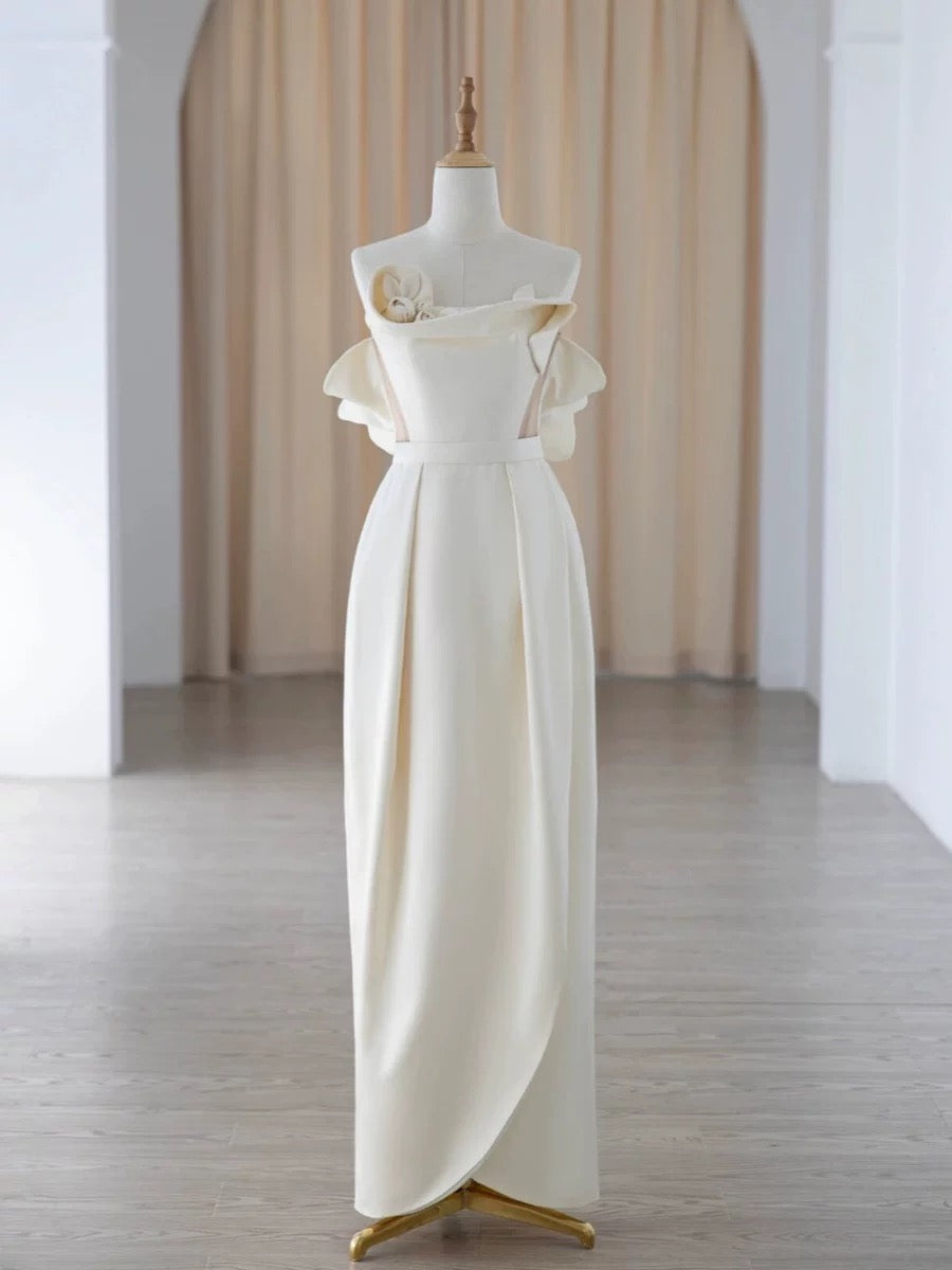 Niulatu Sheath Strapless Sleeveless Ivory Satin Wedding Dresses With Ruffles HZ1110