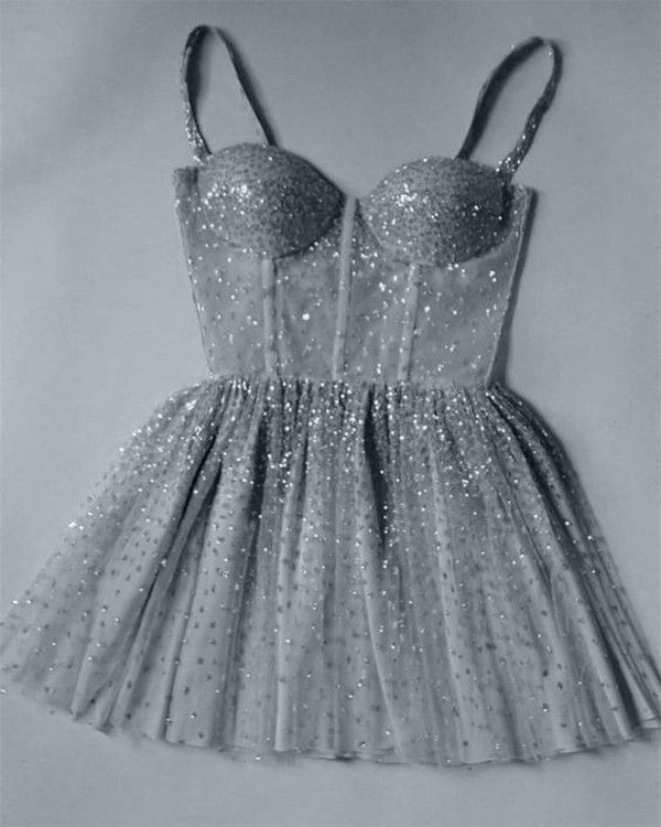 Niulatu Spaghetti Straps Glitter Sliver Short Homecoming Dress Birthday Outfit HZ1110