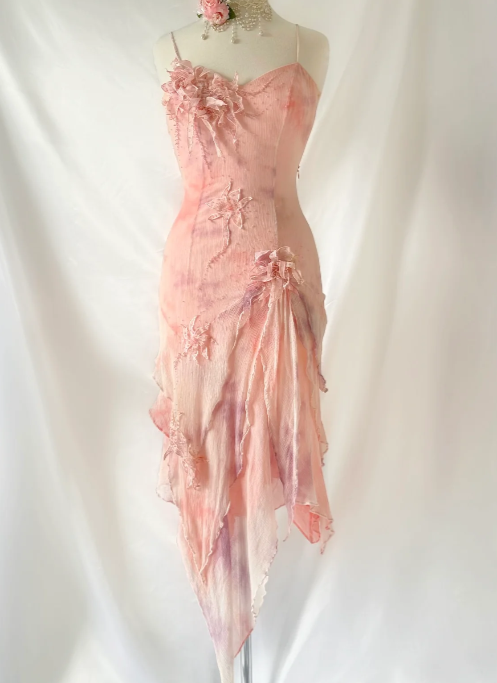 Niulatu Spaghetti Straps Sheath Chiffon Beaded Short Prom Dresses Blush Pink Evening Gowns HZ1031