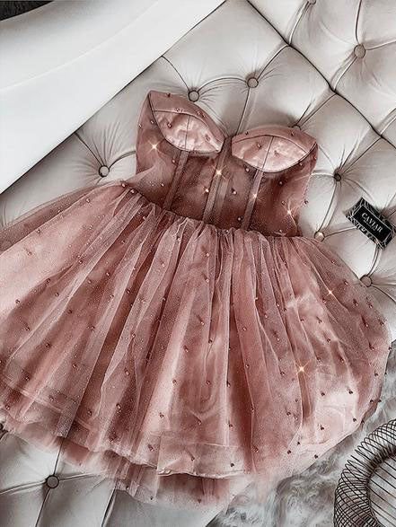 Niulatu Sparkly Beaded Strapless Dusty Homecoming Dress Birthday Outfit HZ1110