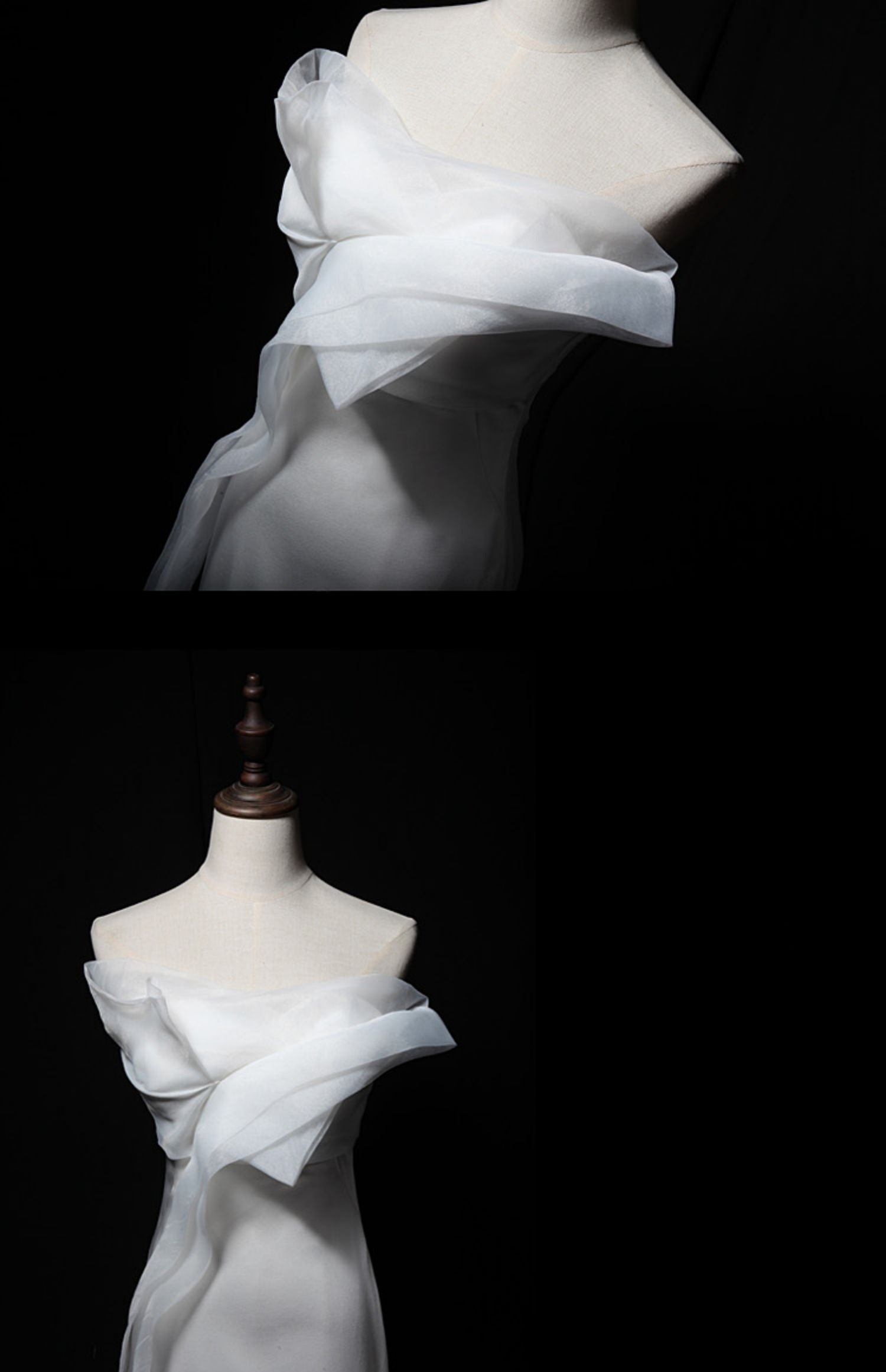 Niulatu Strapless Mermaid Tulle Satin Long Prom Dress, White Formal Dress HZ1108