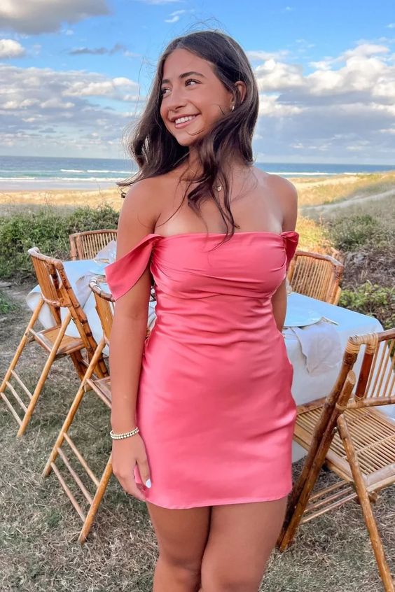 Niulatu The Shoulder Satin Tight Short Dress Senior Homecoming Dress HZ1110
