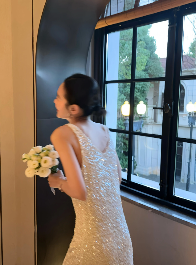 Niulatu White A Line V Neck Beaded Sequin Satin Prom Dress Outfits HZ0113