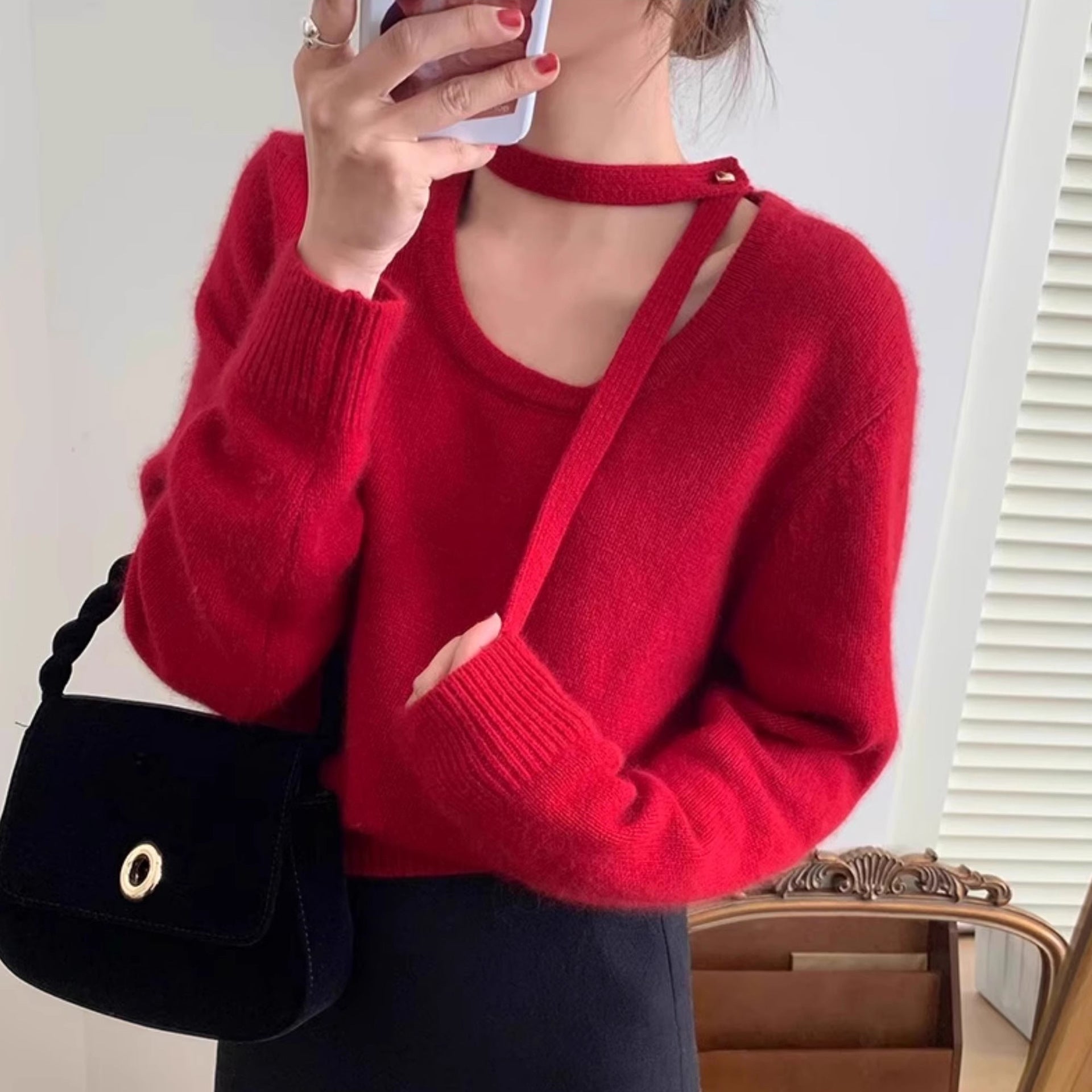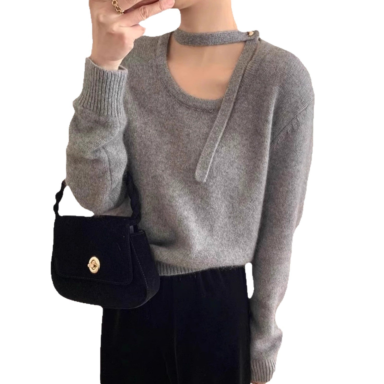Solid Color Design Feeling Hanging Neck With Low Round Collar Sweater Women In Autumn And Winter Small Man With Soft Knitted Knitted Shirt Woman HZ0108
