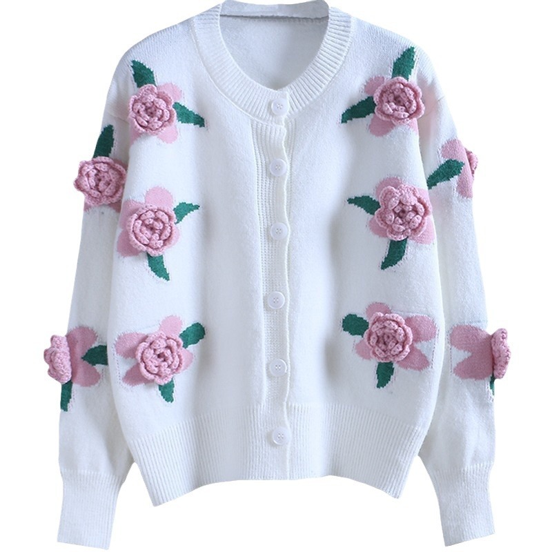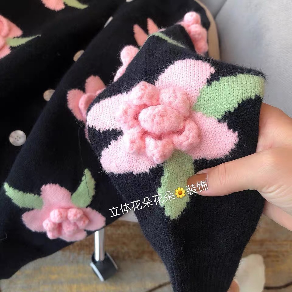 Spring And Autumn 2025 New Knitted Cardigan Women's Heavyweight Three-Dimensional Flowers Hit The Loose Fashion Sweater Jacket Tide HZ0108