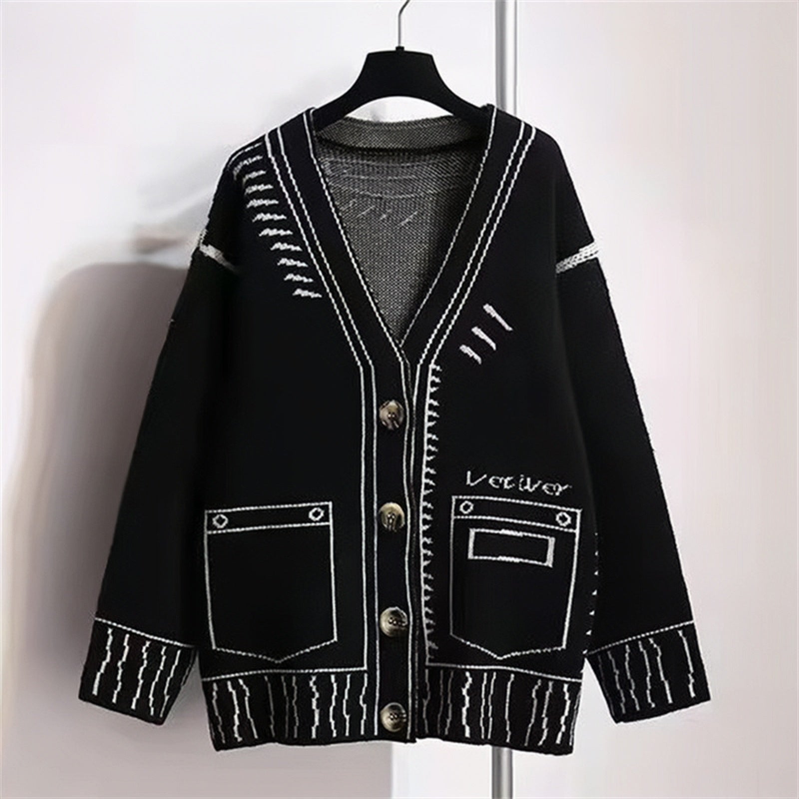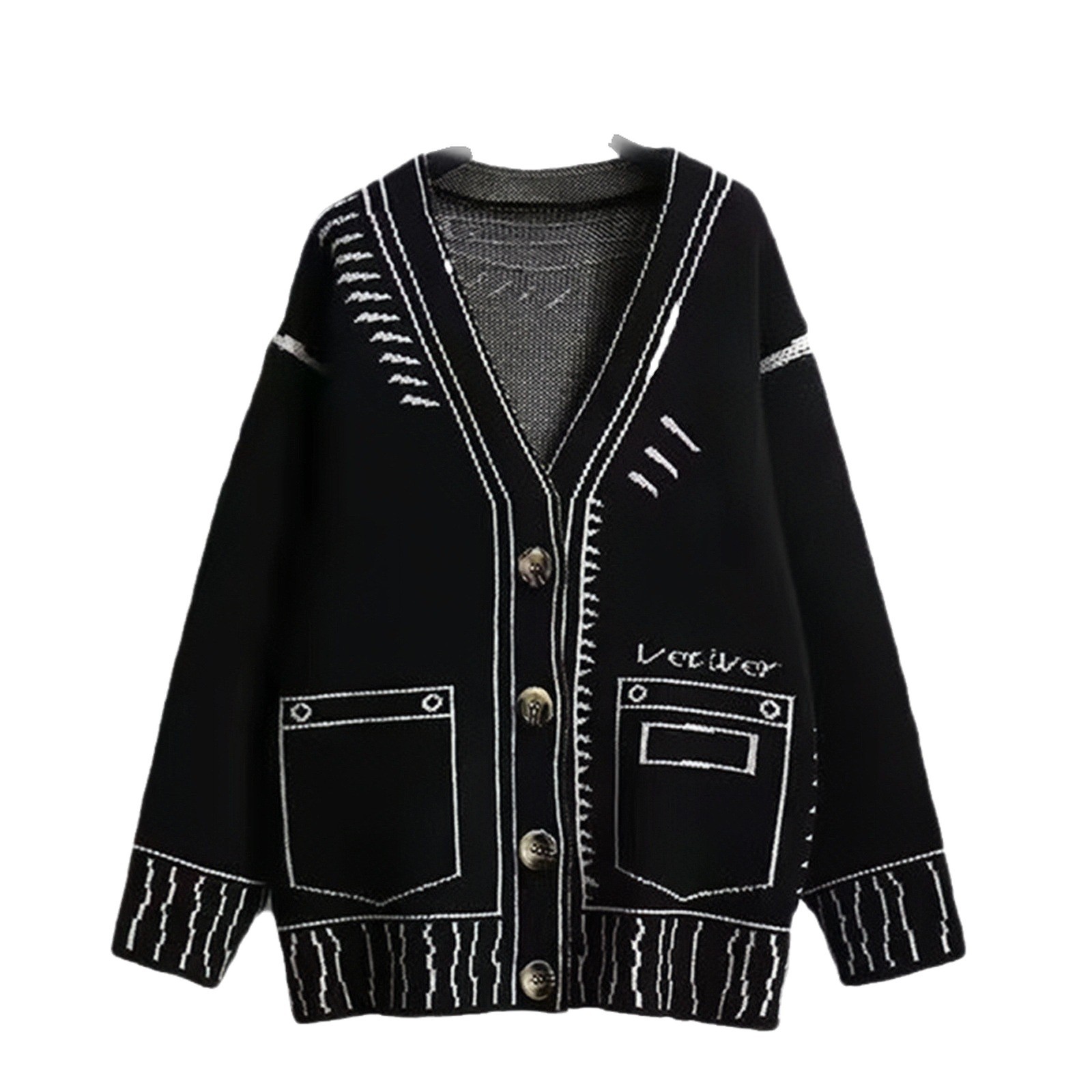 Sweater Women's Fall/Winter 2025 Women's Black And White Cuum Painting Graffiti Loose Lazy Shirt Coat Knitted Top HZ0108