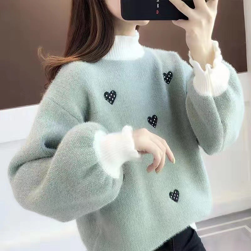 Women's Sweater Women's Autumn And Winter 2025 Loose Lazy Half-High Collar Hooded Thick Knitted Bottom Shirt Top HZ0108