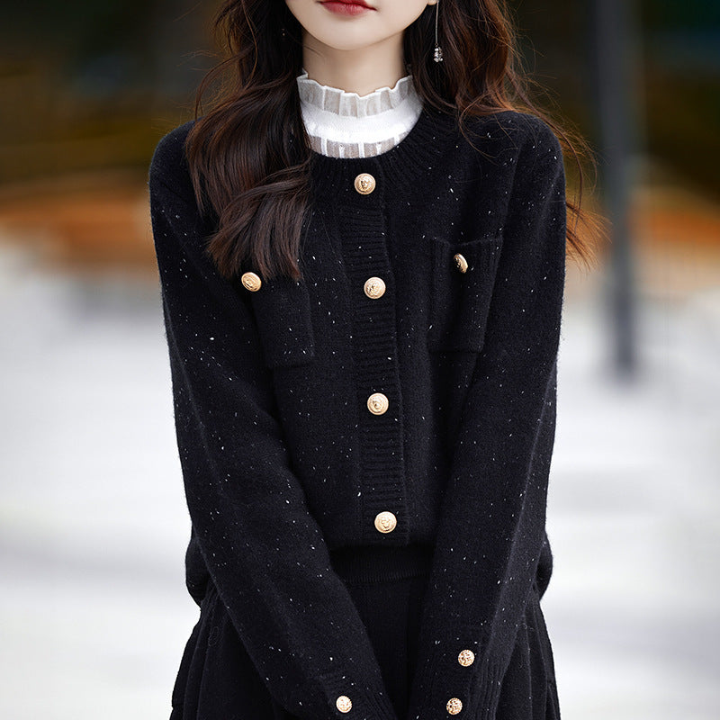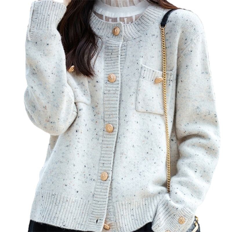 French Lazy Little Fragrant Knit Coat Women Autumn And Winter New Round-Neck Sweater Women's Color Yarn Fashion Spring Coat HZ0108