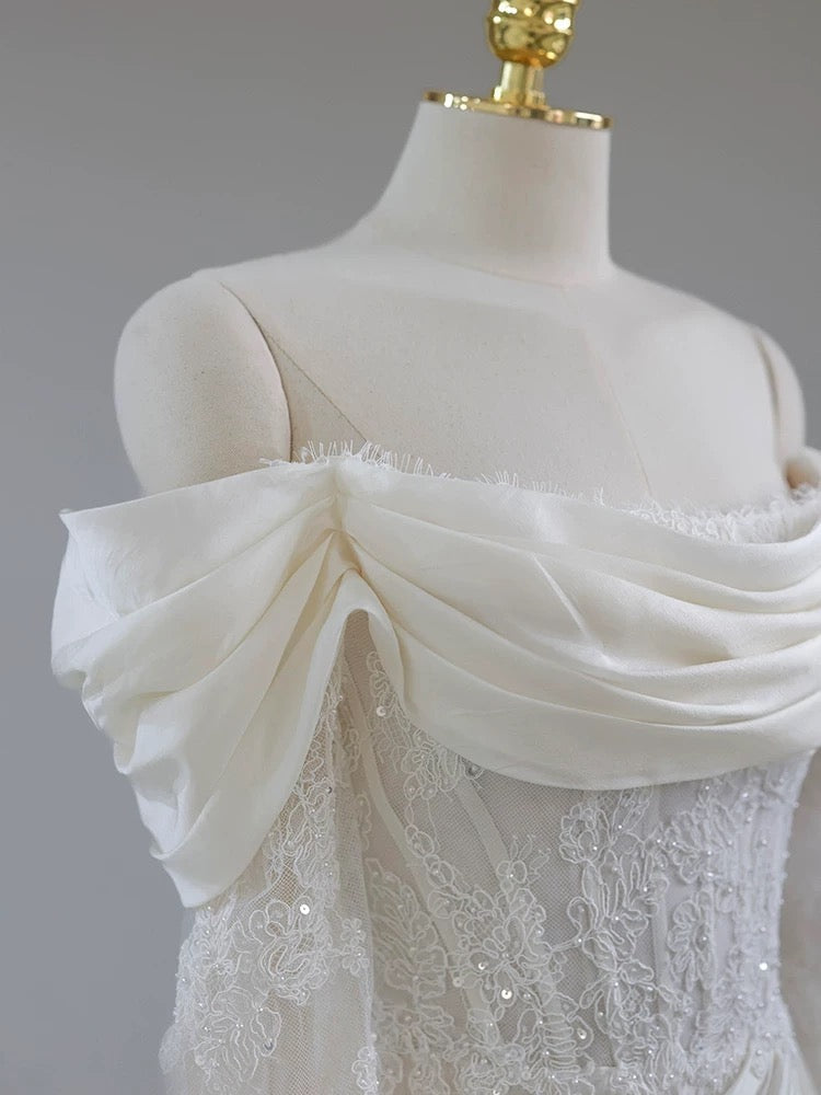 Niulatu Mermaid Off The Shoulder Pleats Satin Long Sleeves Wedding Dresses Brides Dress SD2101