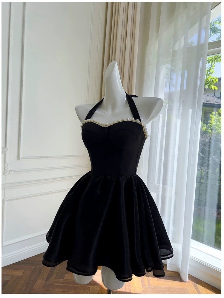 Niulatu A line Halter Black Short Homecoming Dresses Tulle Birthday Outfits HZ1110
