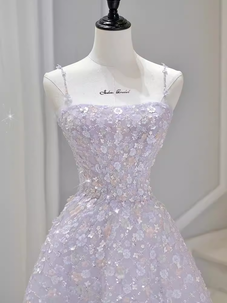 Niulatu A Line Sleeveless Pink Floral Long Prom Dress HZ1110