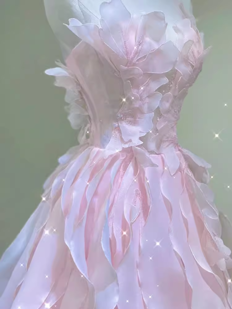 Niulatu A Line Sleeveless Pink Long Floral Prom Dress HZ1110