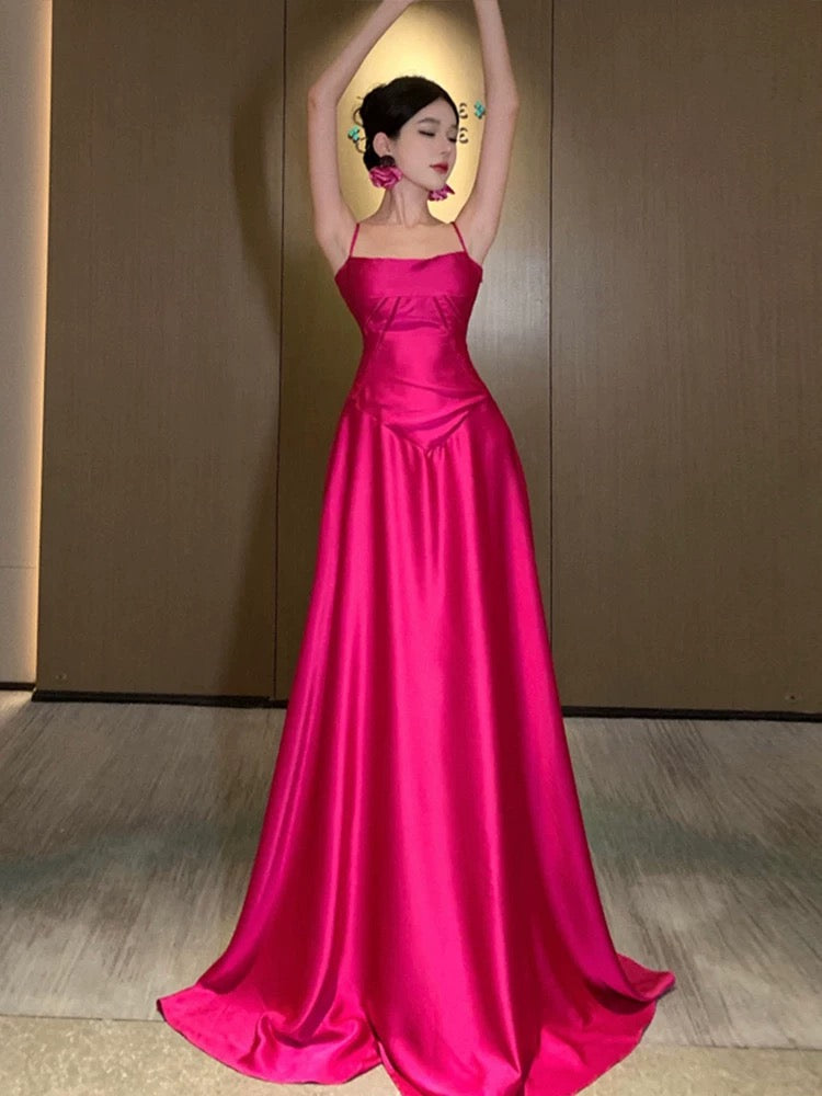 Niulatu A line Spaghetti Straps Hot Pink Long Evening Dress Prom Dresses Birthday Outfits HZ1110