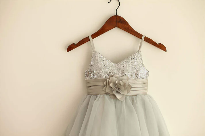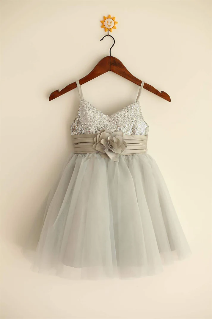 Niulatu A Line Spaghetti Straps Tulle Sequin Flower Girl Dress HZ1110