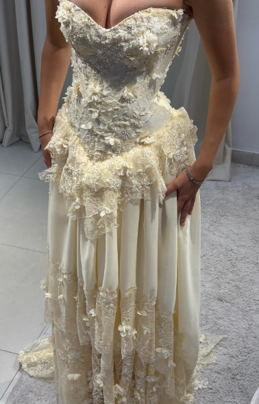Niulatu A Line Strapless Chiffon Lace Long Prom Dress, Evening Dress HZ1110