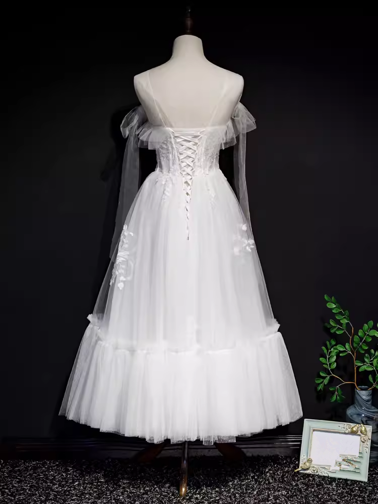 Niulatu A line Straps White Tulle Homecoming Dress 18th Birthday Outfits HZ1110