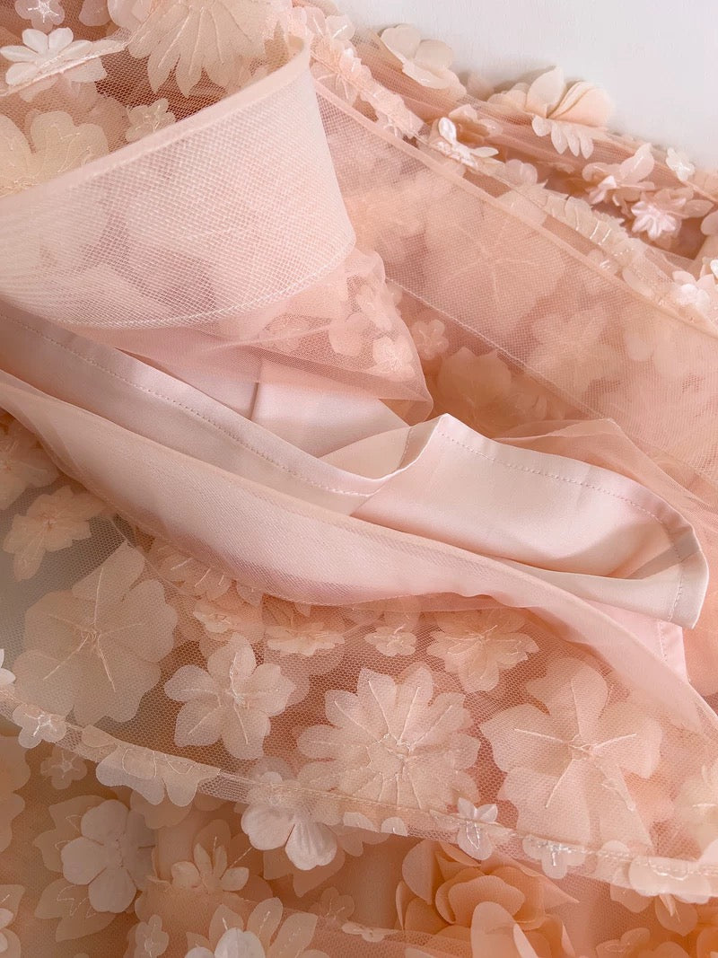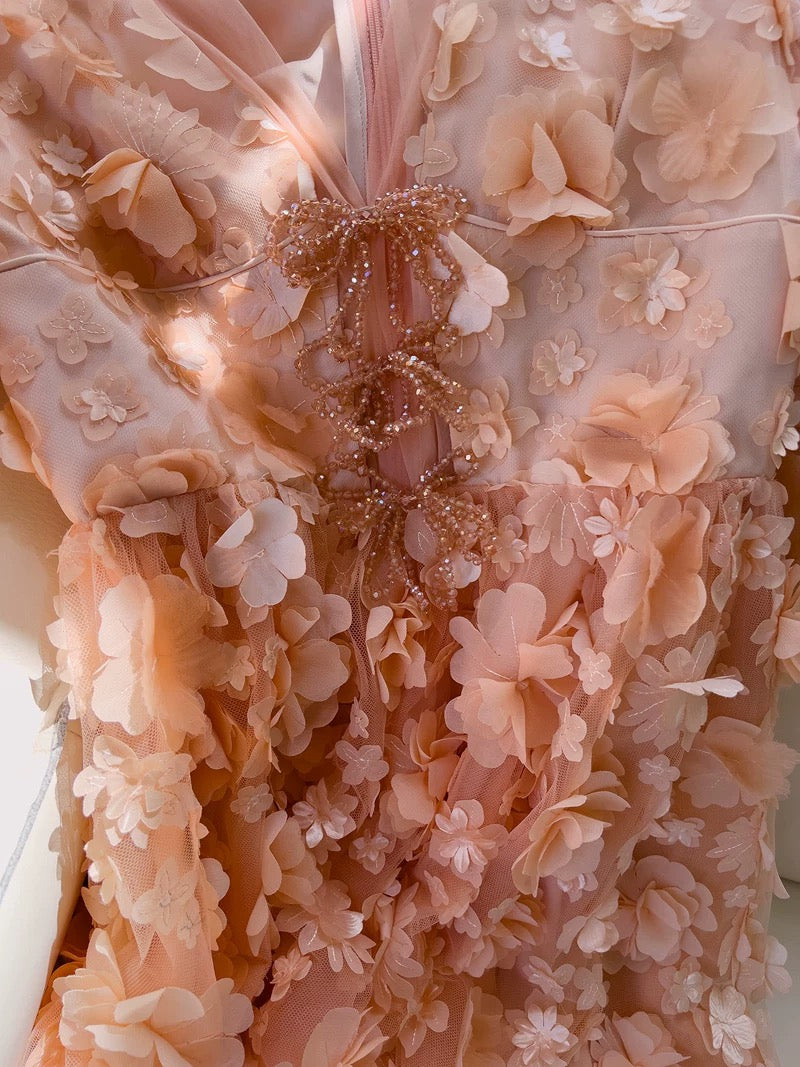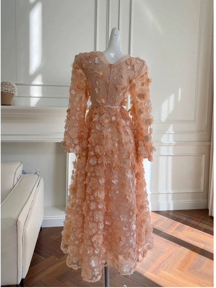 Niulatu A line V Neckline Long Sleeves Blush Pink Lace Prom Dress Formal Dresses With Bow HZ1110