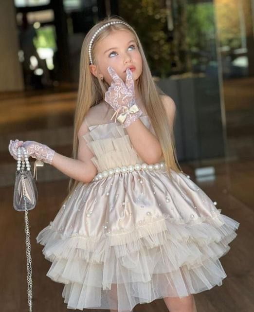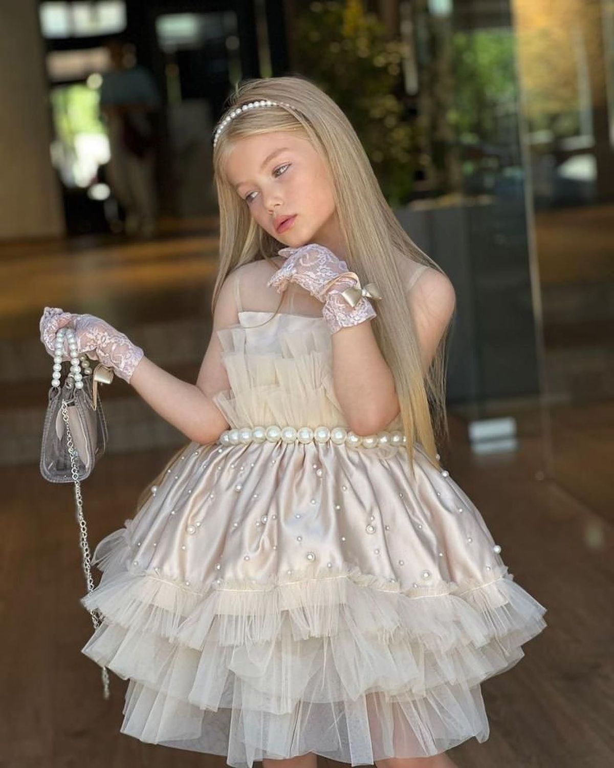 Niulatu Ball Gown Satin Tulle Beaded With Gloves Flower Girl Dress HZ1110