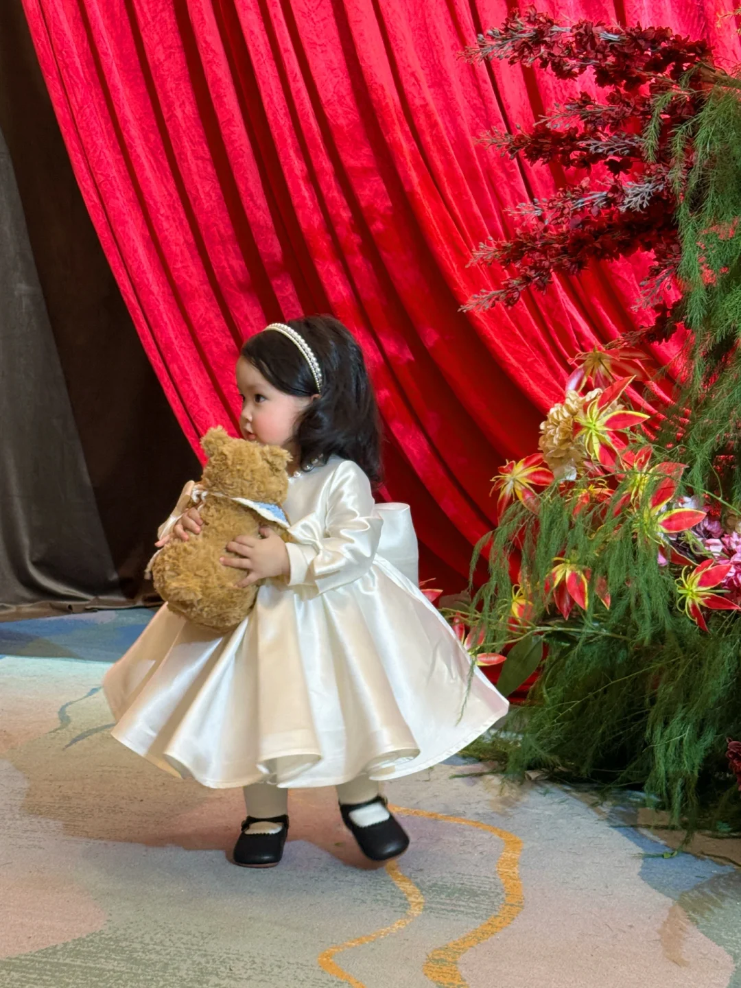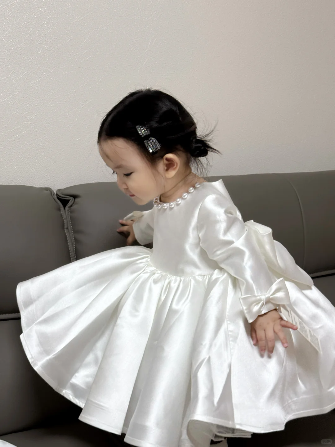 Niulatu Ball Gown Satin With Long Sleeves Flower Girl Dress HZ1110