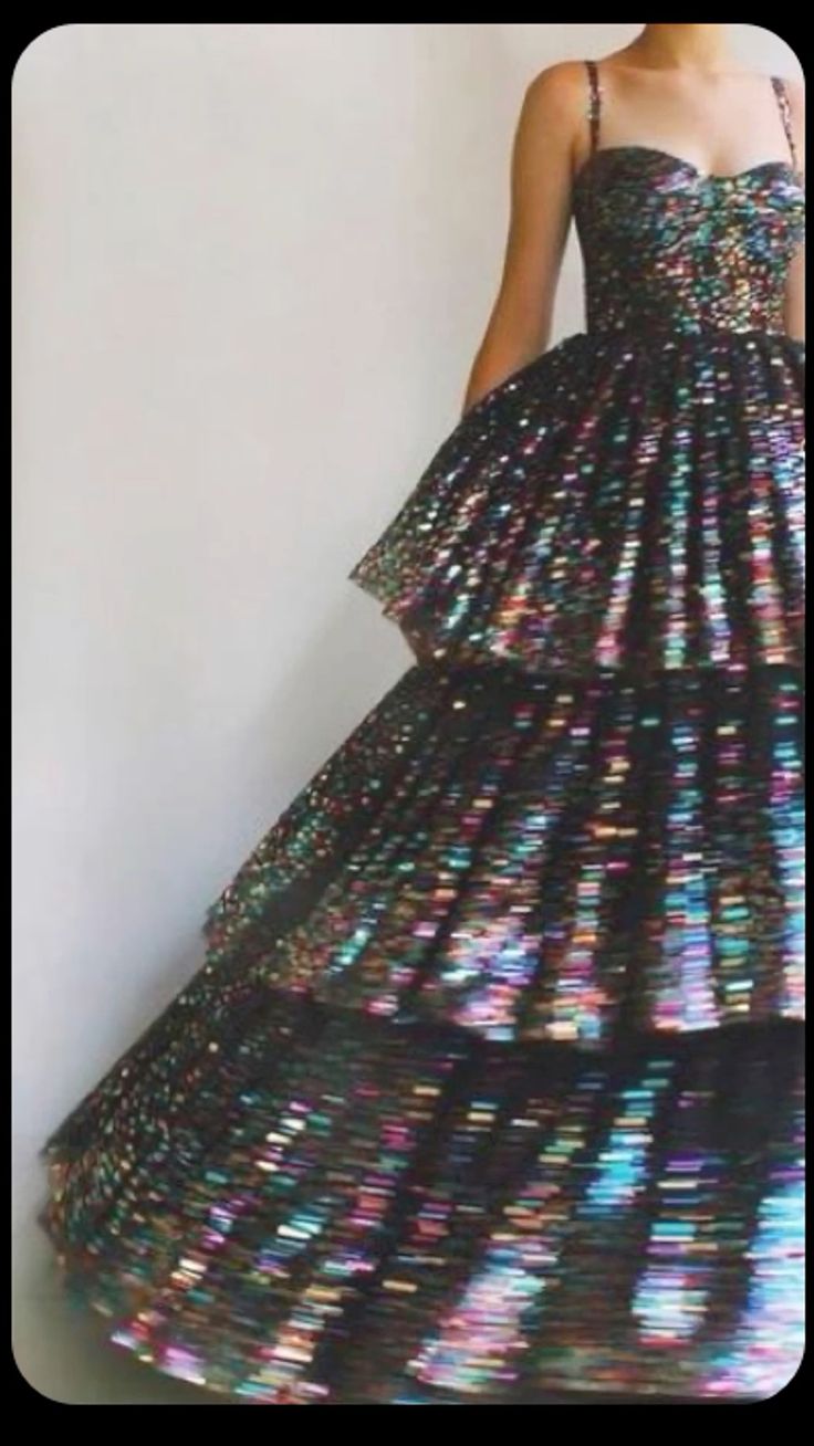Niulatu Ball Gown Spaghetti Straps Ruffles Layers Black Sequin Long Prom Dresses Formal Evening Dress HZ1110