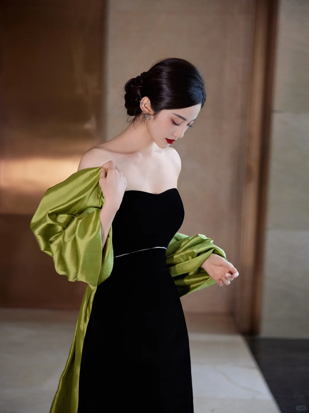 Niulatu Black Strapless Satin Long Prom Dress Evening Dress With Bow HZ1007