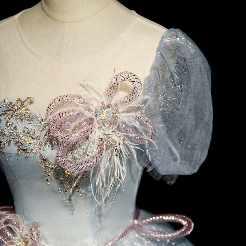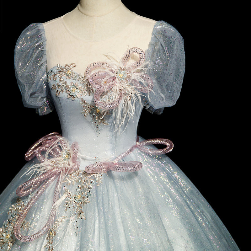 Niulatu blue A-line tulle sequins formal long dress, gray blue evening dress HZ1108