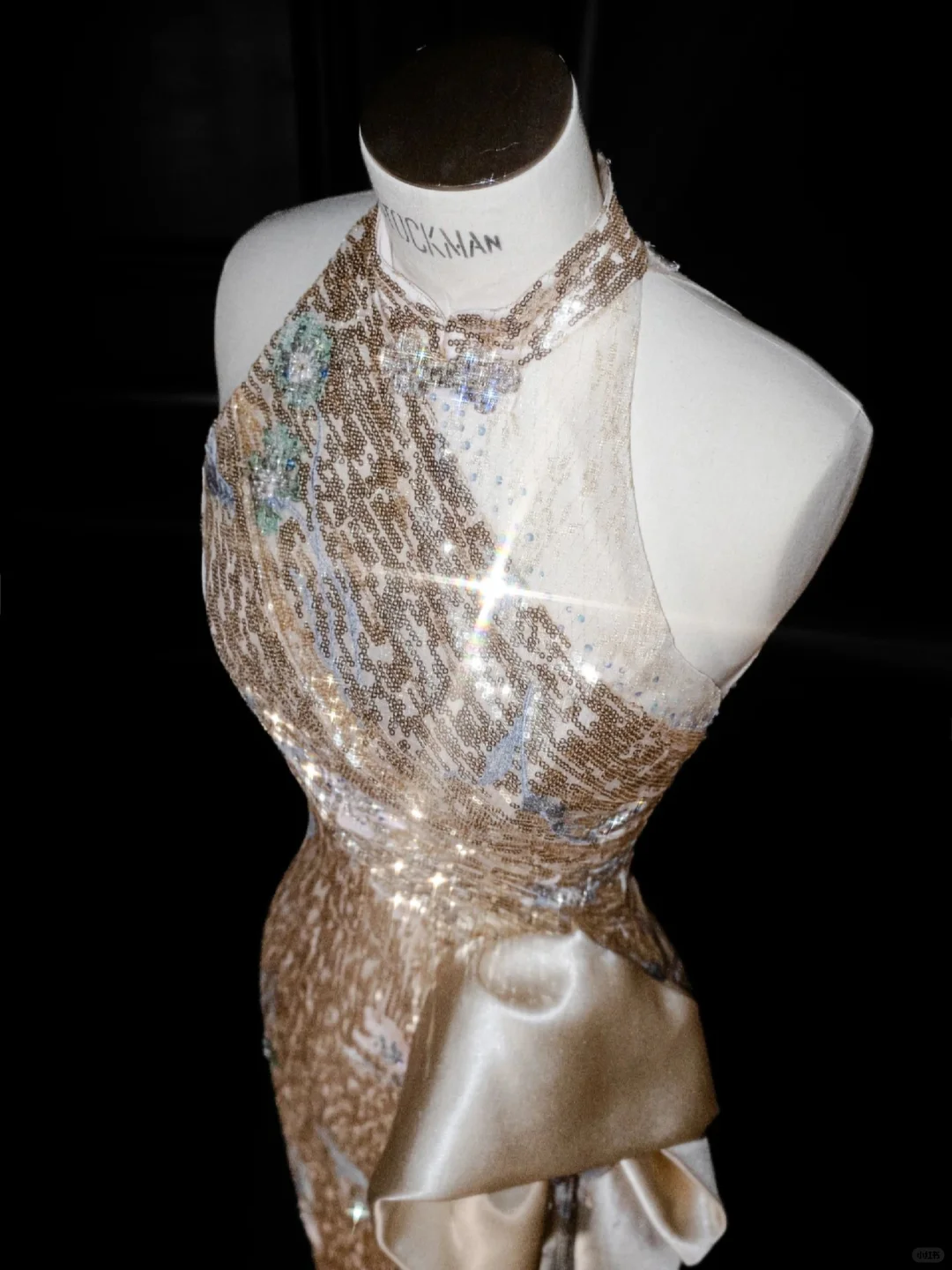 Niulatu Champagne Gold Sequin Sheath Prom Dress Halter Long Evening Dress HZ1007
