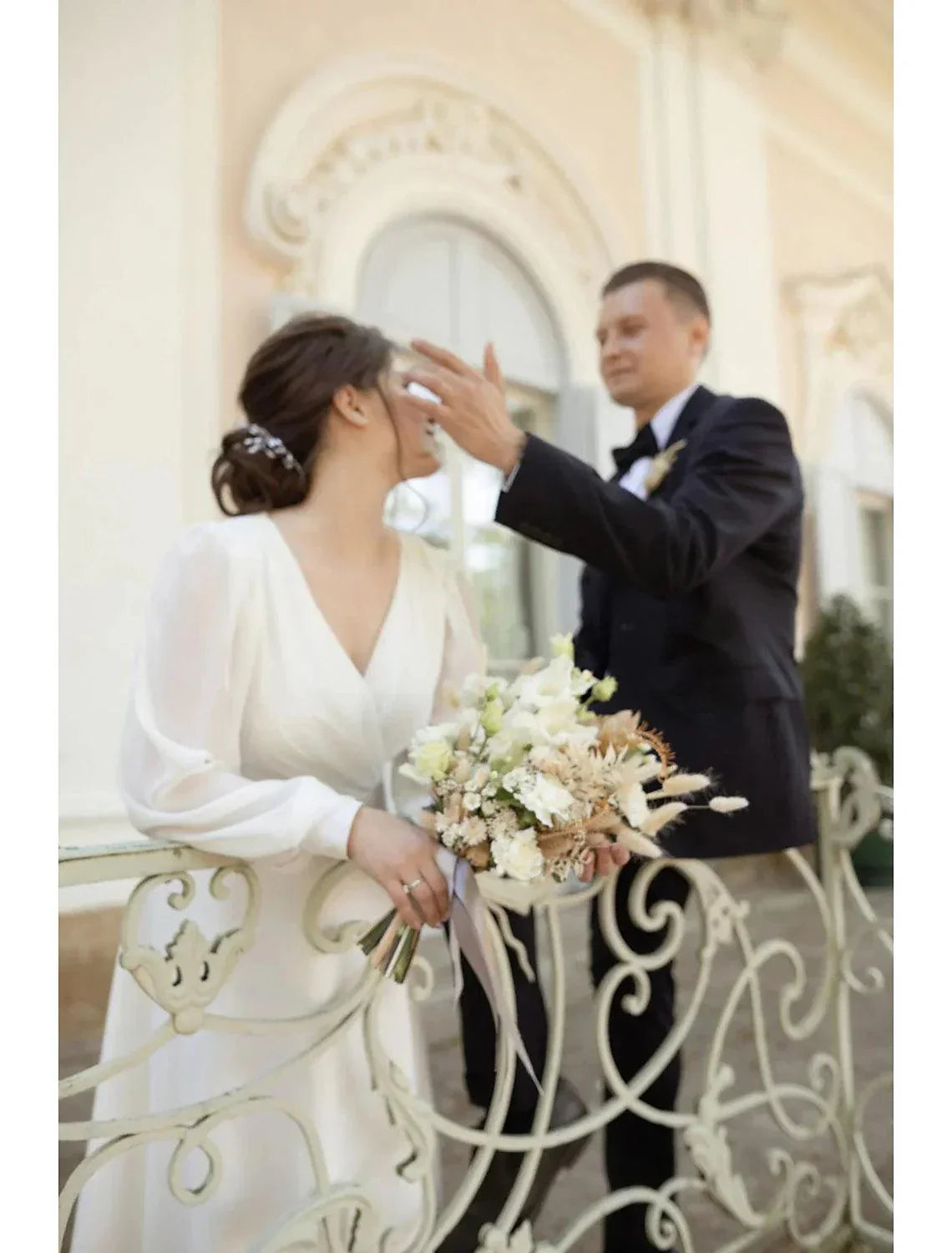Niulatu Little White Dresses Wedding Dresses A-Line V Neck Long Sleeve Ankle Length Chiffon Bridal Gowns With Solid HZ1007