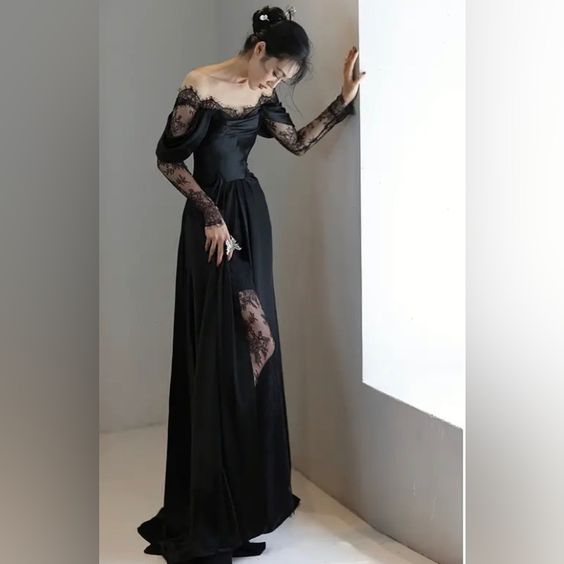 Niulatu Mermaid Long Sleeves Lace Black Off The Shoulder Wedding Dress HZ1110