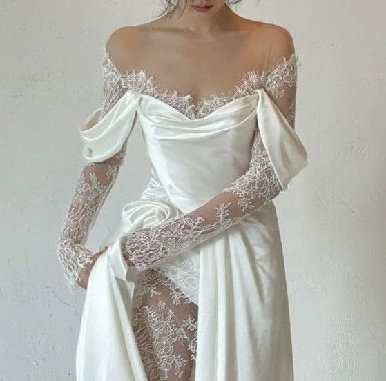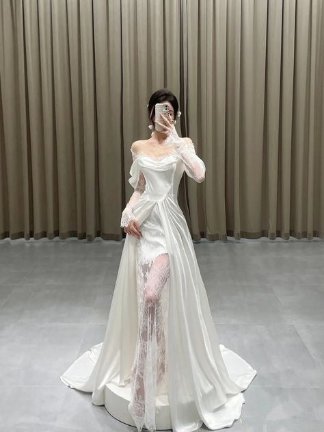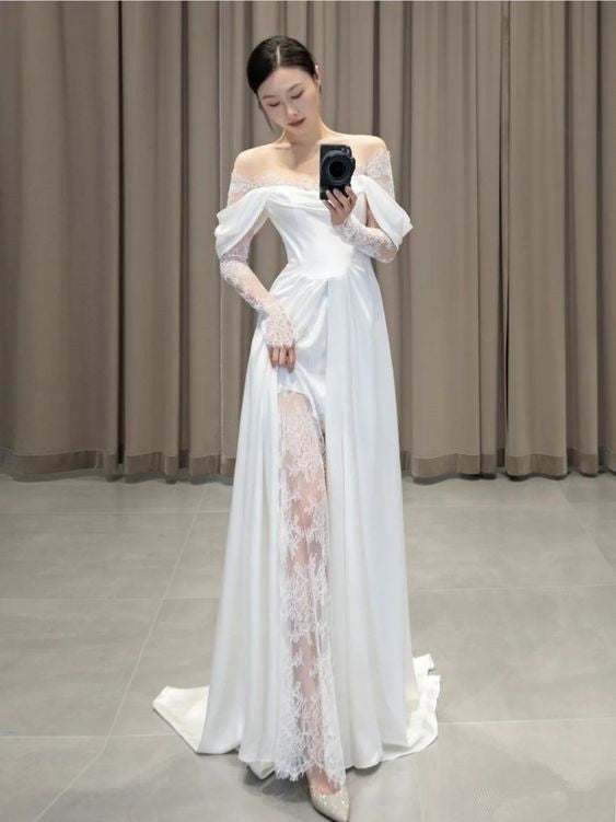 Niulatu Mermaid Long Sleeves Lace White Off The Shoulder Wedding Dress HZ1110