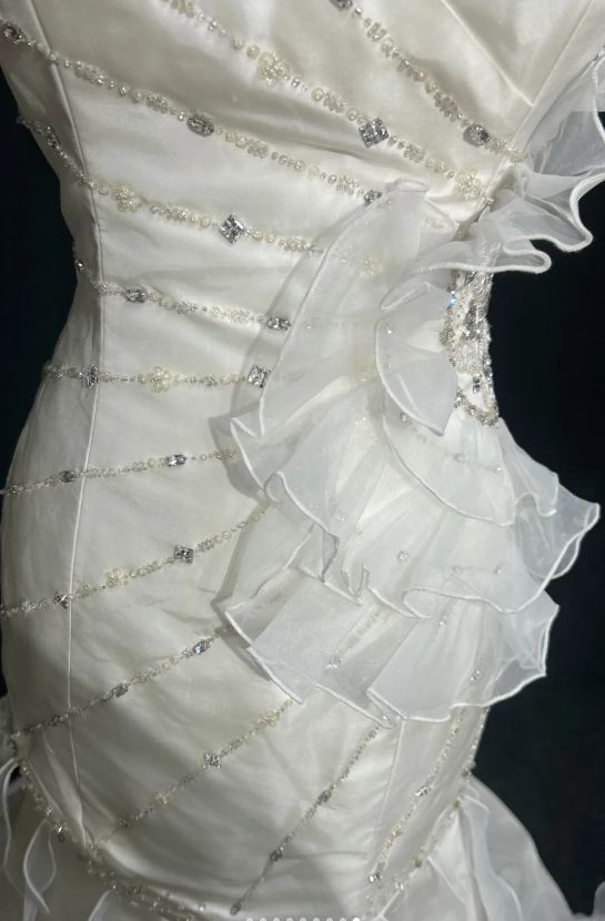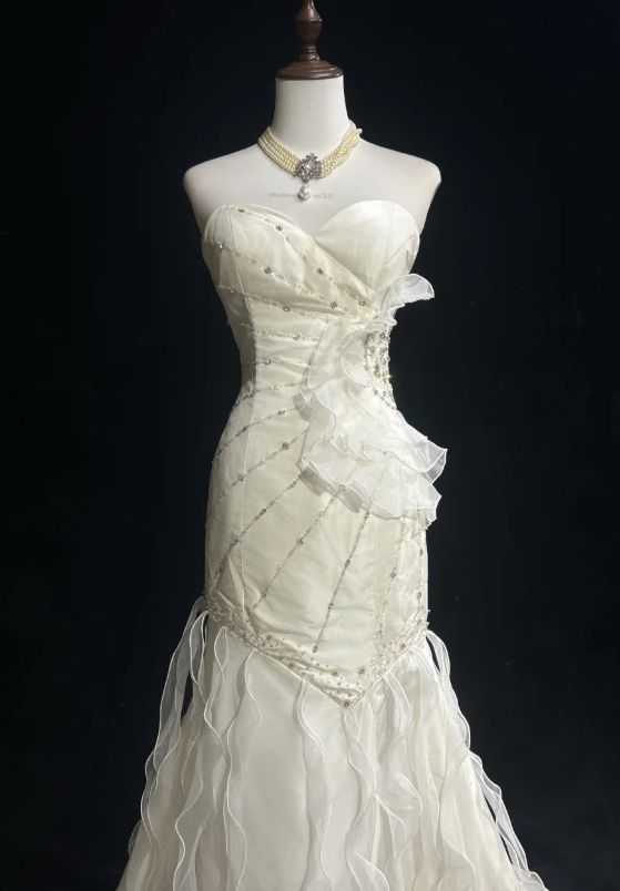 Niulatu Mermaid Satin Chiffon Ruffle Beaded Long Prom Dress,Wedding Dress,Evening Dress HZ1110