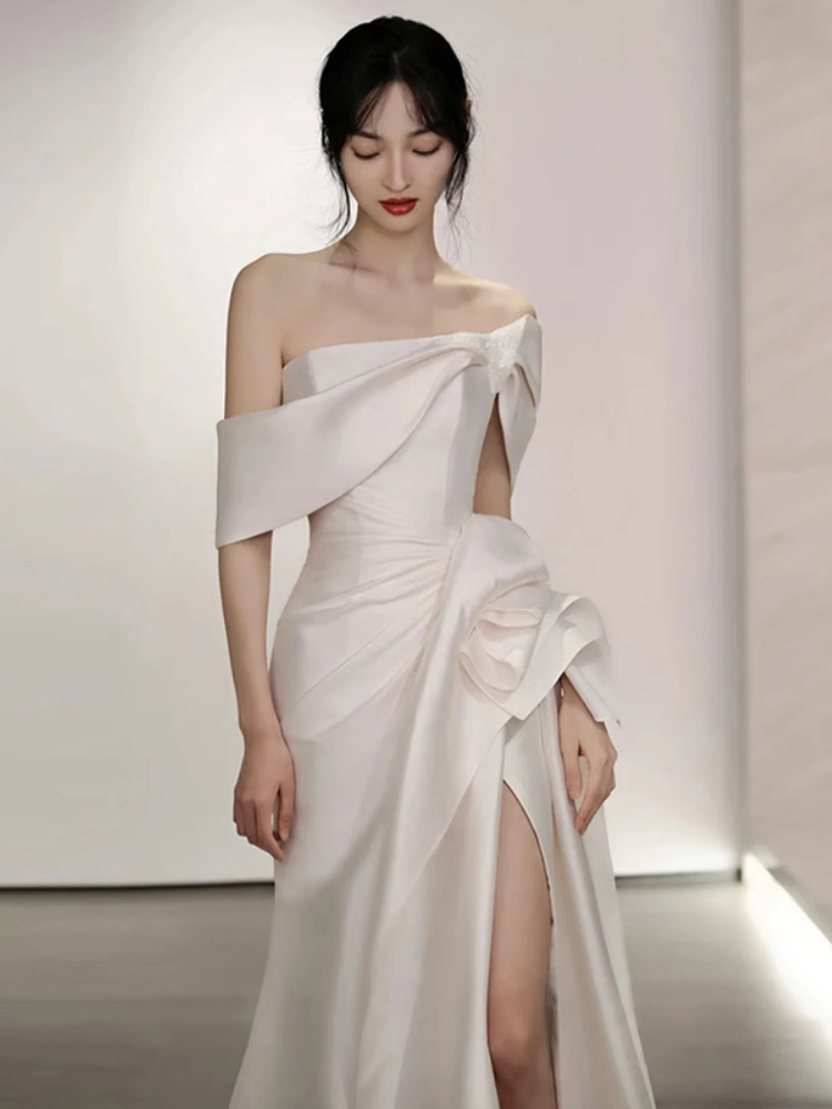 Niulatu Mermaid Short Sleeves White Off The Shoulder Slit Wedding Dress HZ1110