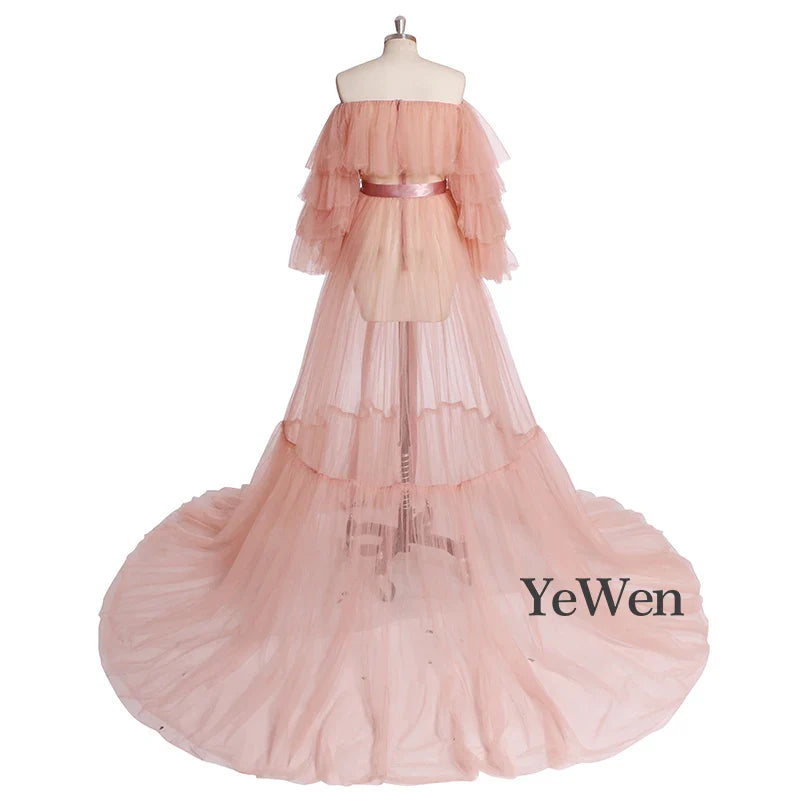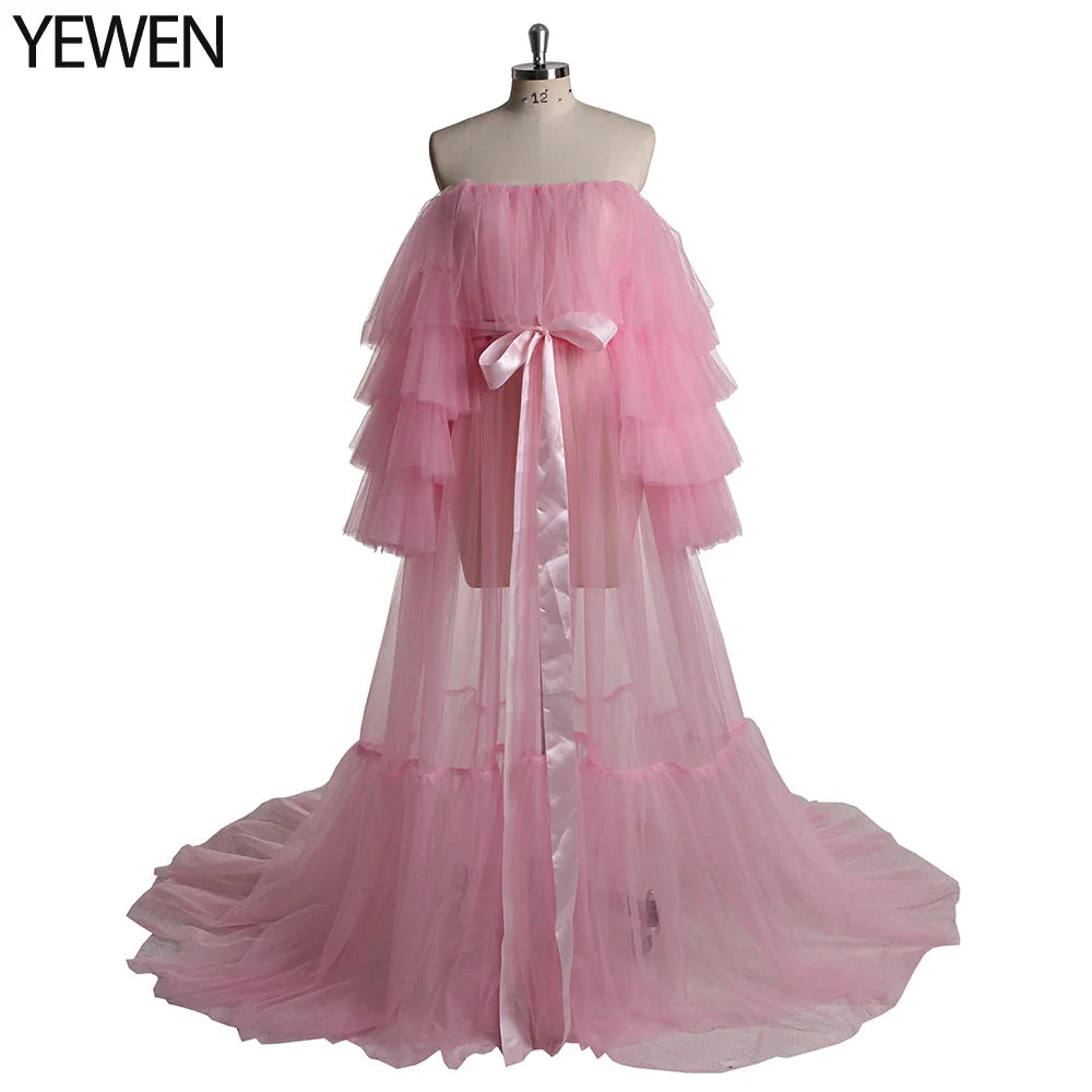 Niulatu Pink Long Maternity Photography Props Dresses Tulle Perspective Pregnancy Mesh Maxi Gown For Pregnant Women Photo HZ1007