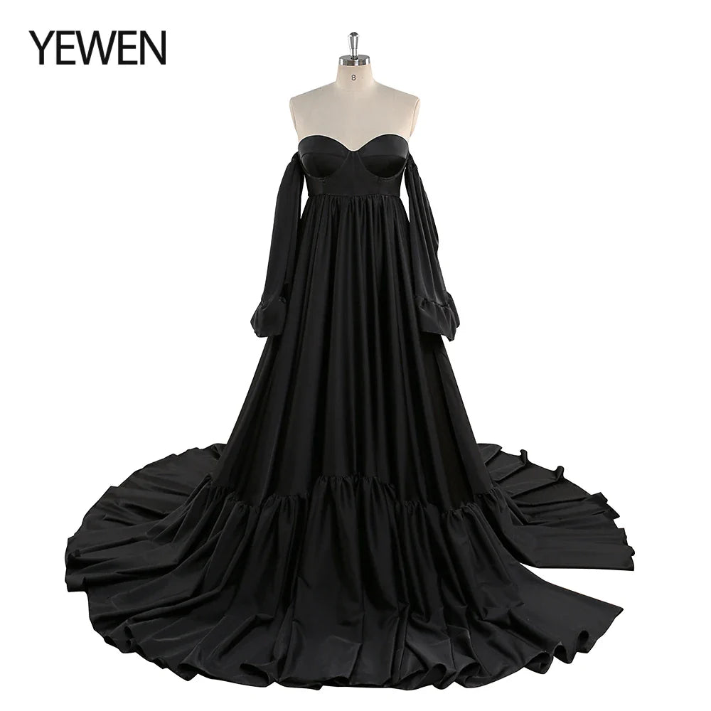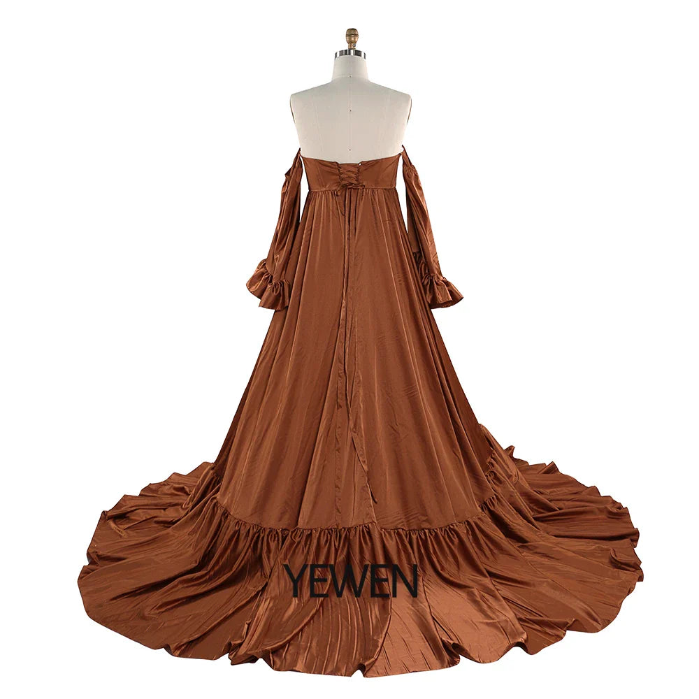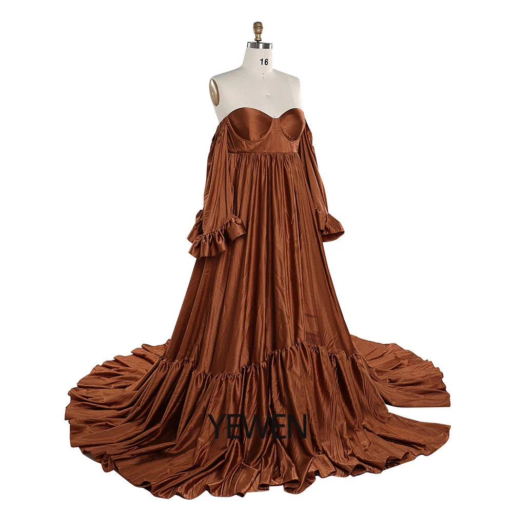 Niulatu Satin Long Shoulderless Pregnancy Woman Baby Shower Maternity Dresses Photoshoot Gown HZ1007