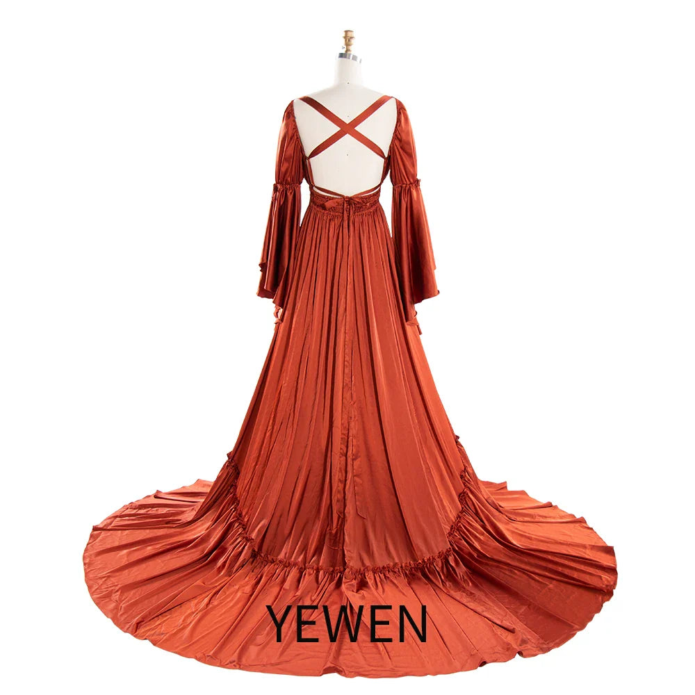 Niulatu Satin Long Sleeeves Pregnancy Woman Baby Shower Maternity Dresses for Photoshoot HZ1007