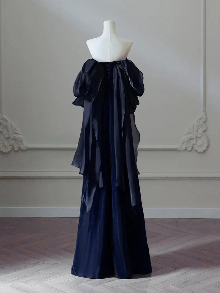 Niulatu Satin Sheath Long Prom Dress, Dark Blue Long Evening Dress HZ1026