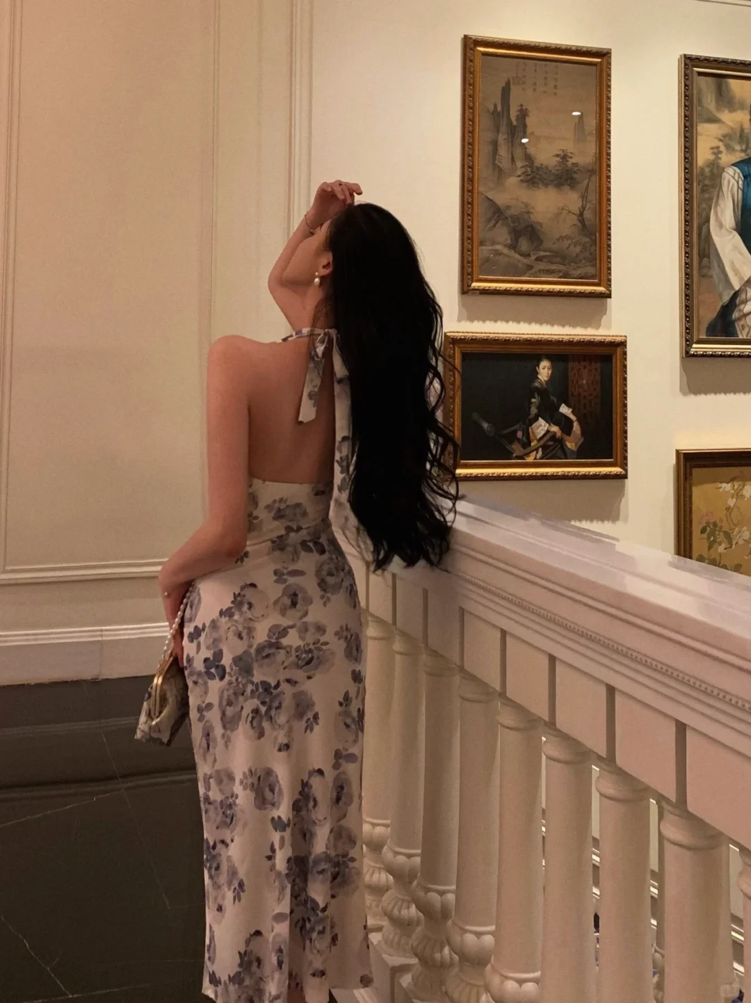 Niulatu Sheath Halter Print Floral Chiffon Open Back Prom Dress Evening Dress HZ0113